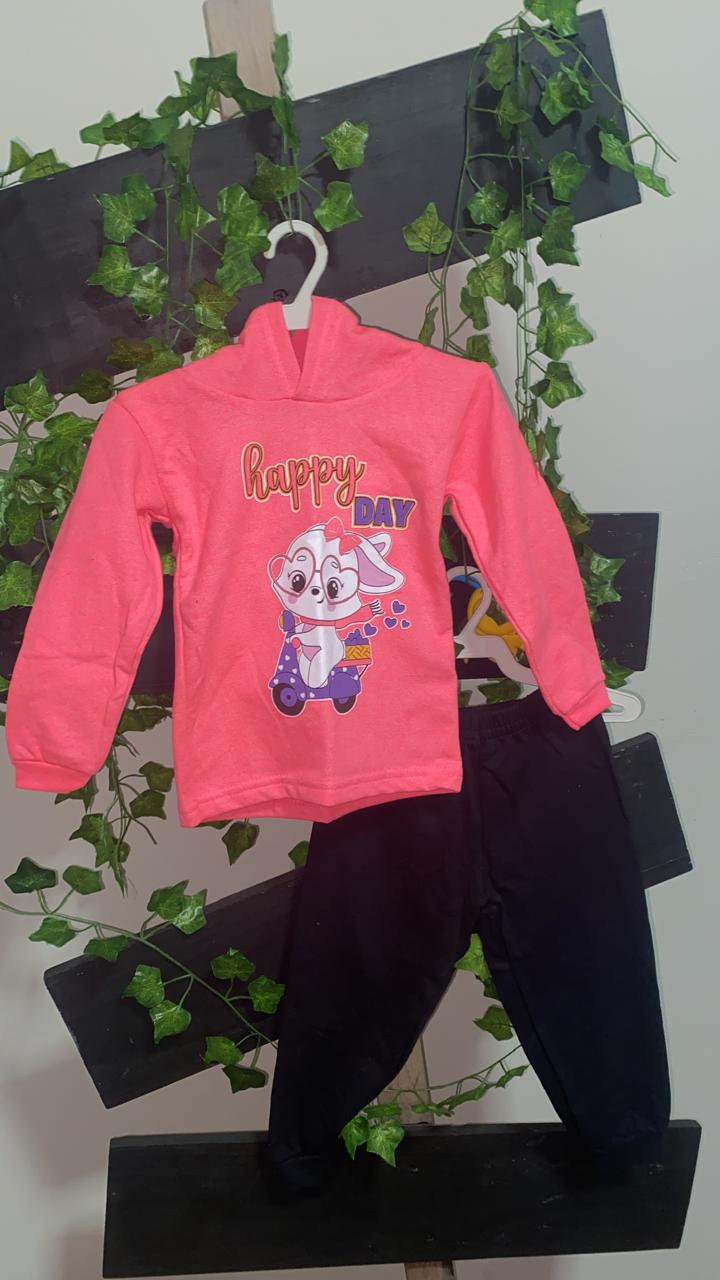 O look perfeito para manter os pequenos aquecidos com muito charme! Feito em moletom flanelado de alta qualidade, o conjunto conta com blusa com capuz e calça com elástico, garantindo conforto, liberdade nos movimentos e um visual super fofo.
